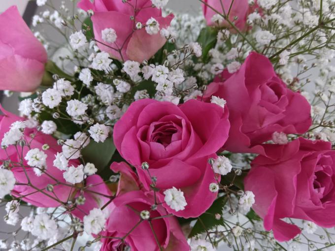 今回はピンクの薔薇とかすみ草に。