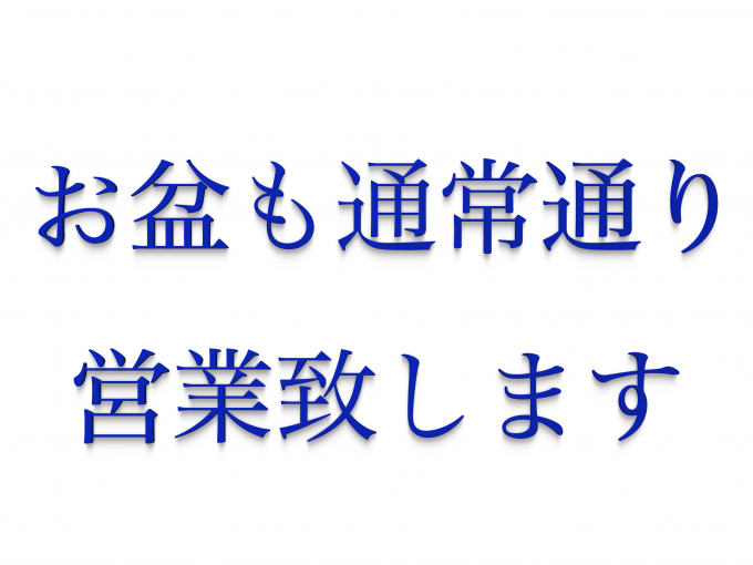 > お盆も通常通り営業致します。