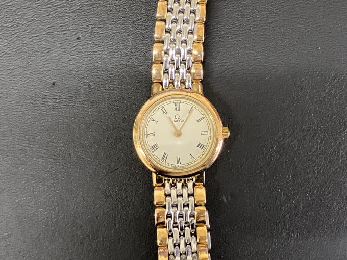 オメガのお買取です。こちらはレディースのクオーツ。今回不動の状態でお買取させて頂きました。故障、電池切れでもおまかせください。おかげさまで13周年!オメガのお買取りもおたからや箕面店へ!
