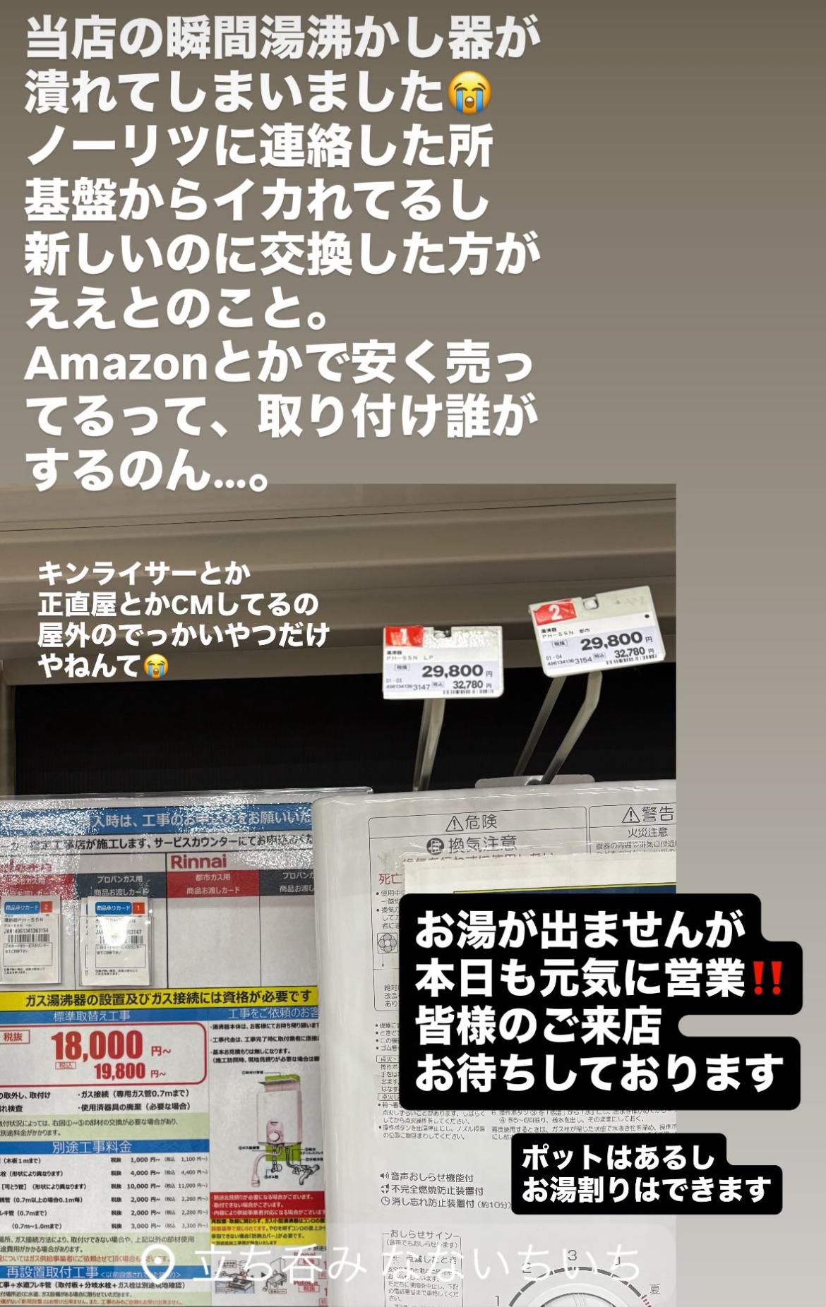 > 給湯器こわれてますが、本日も是非!