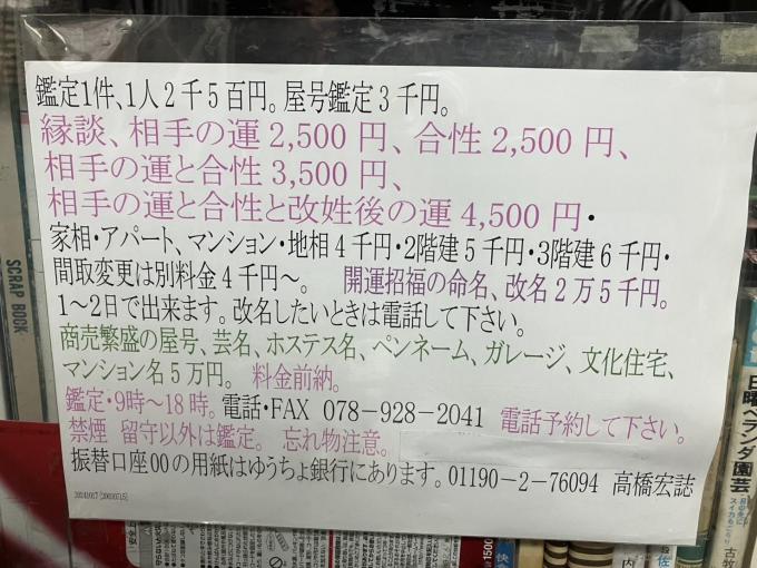 神姫バス玉津曙バス停すぐの”占い師高橋宏誌”