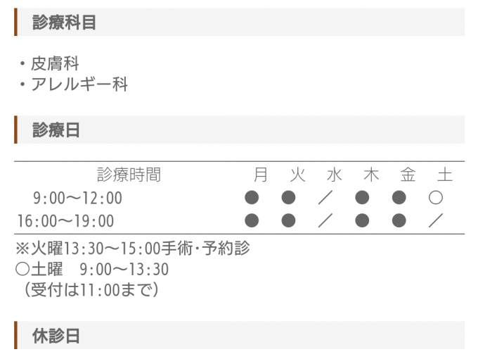 | 休診日 | 水・日・祝日 |